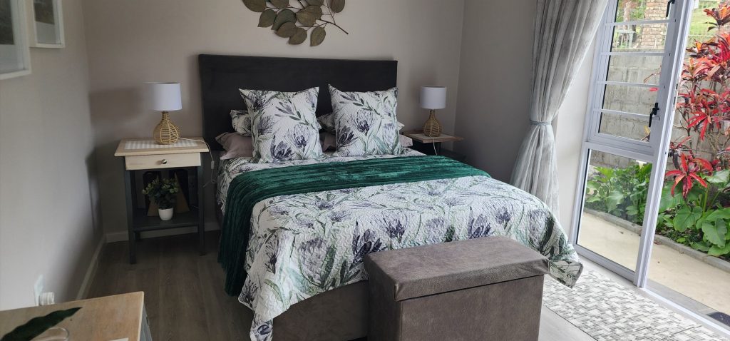 The Green Room features a plush queen-size bed, with its own private entrance and easy access to outdoor amenities.