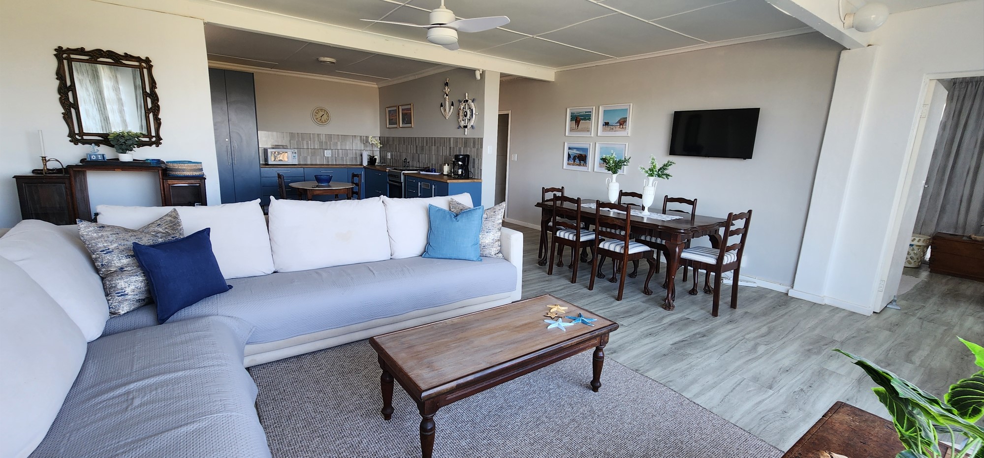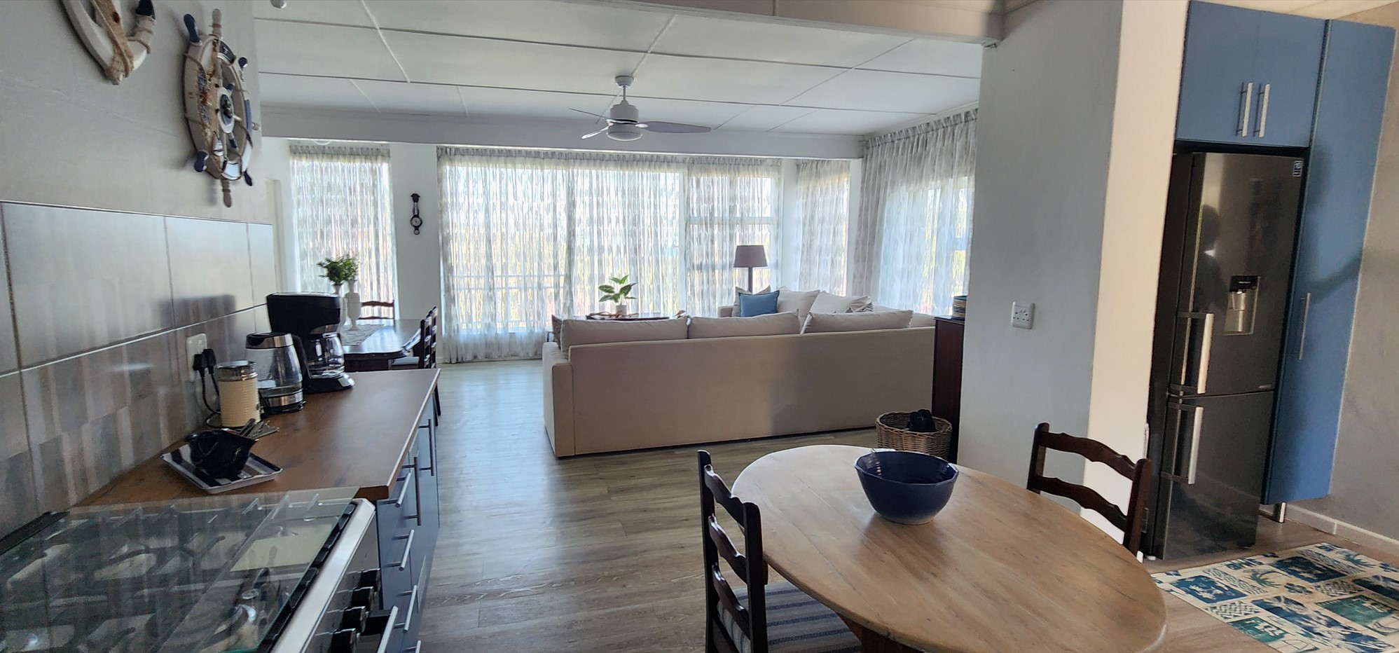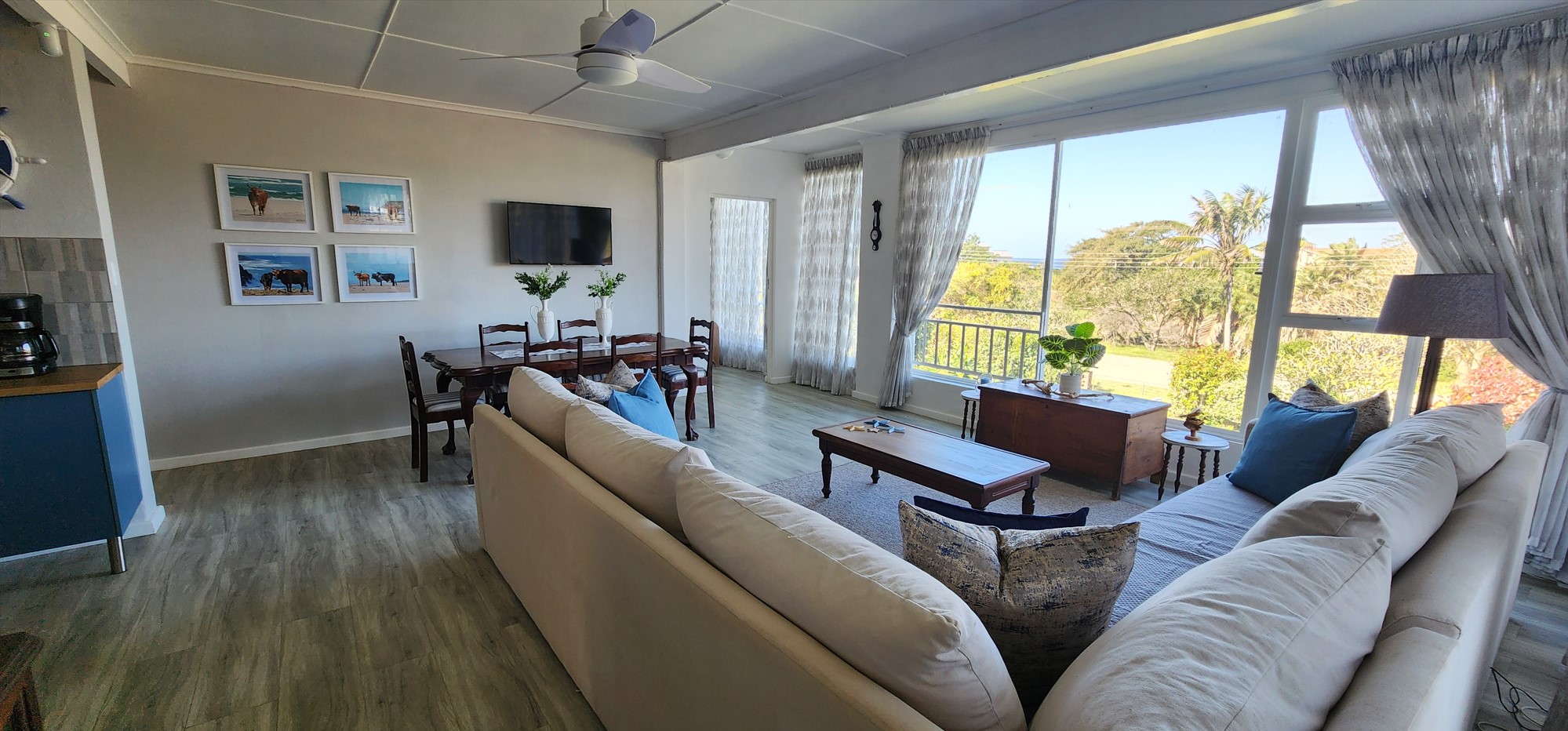 The heart of the home is a spacious, open-plan living area, combining a relaxed lounge, generous dining space, and a fully functional kitchen — all designed for easy, sociable living. From the kitchen sink, you can even glimpse the ocean, making dishwashing a moment to pause and enjoy the view.