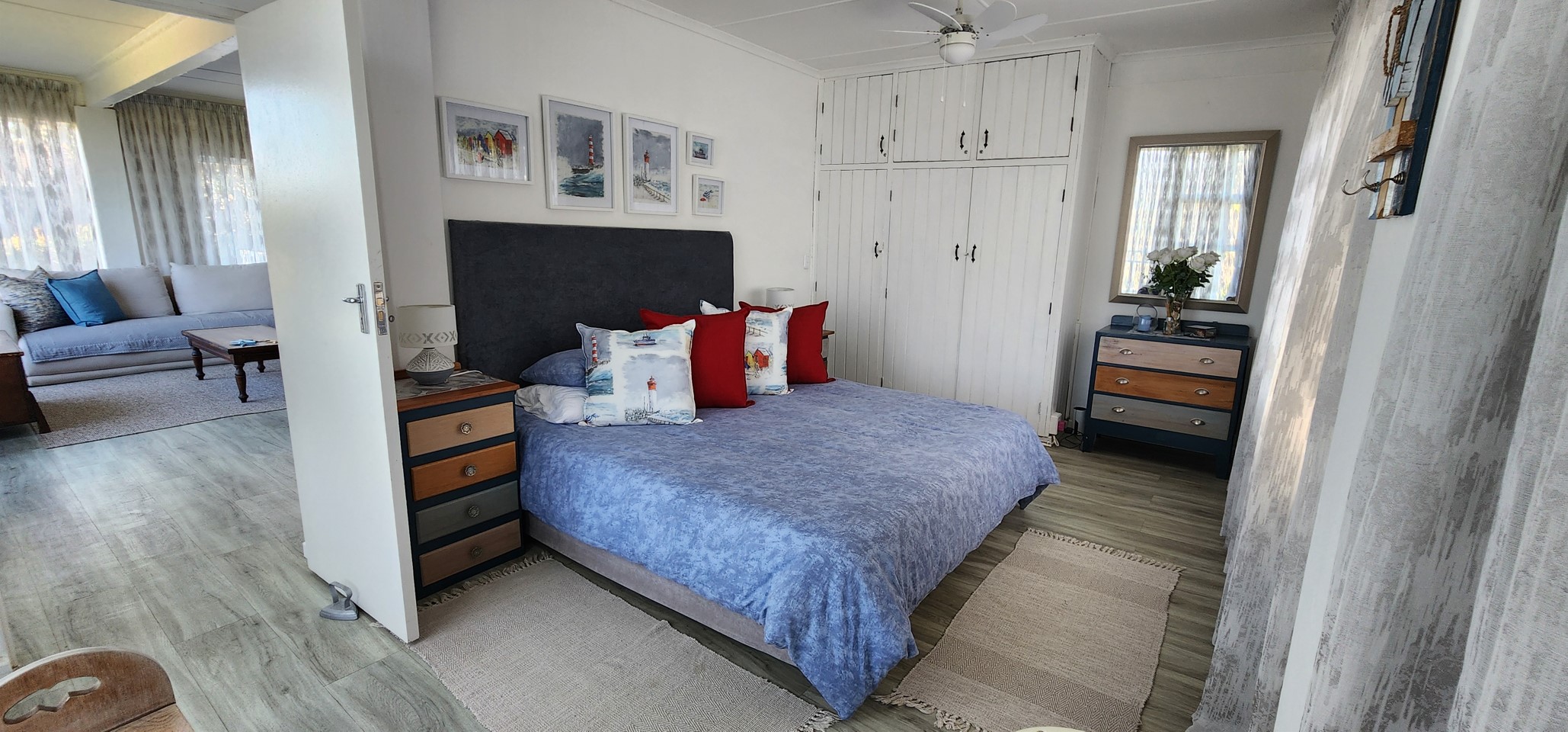 The Red Room is the main bedroom, offering a luxurious king-size bed, perfect for stretching out after a day in the sun.